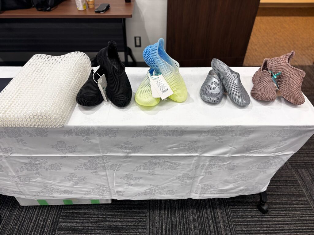 また、3Dスキャナーによるスキャンの実演も行われ、その場で対象物がデータ化される様子をご覧いただきました。加えて、3Dプリント製品については、手に取ったり試着したりすることができる展示としました。