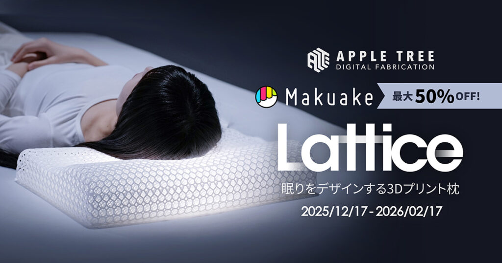 APPLE TREE株式会社は、最新の光硬化方式3Dプリント技術と次世代バイオ素材「ELASTO1000 Bio」を採用した新構造枕『Lattice(ラティス)』を、2025年12月17日よりクラウドファンディング「Makuake」にて支援受付を開始いたします。