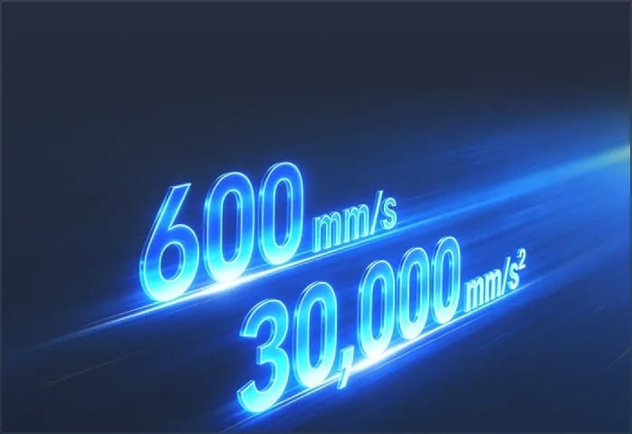 最大600mm/sの造形速度、最大30,000mm/s²の加速度に対応しています。