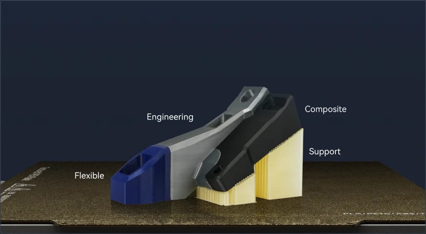 独立したツールヘッドにより、フィラメント切替時の待機時間を抑え、効率的な出力が可能です。