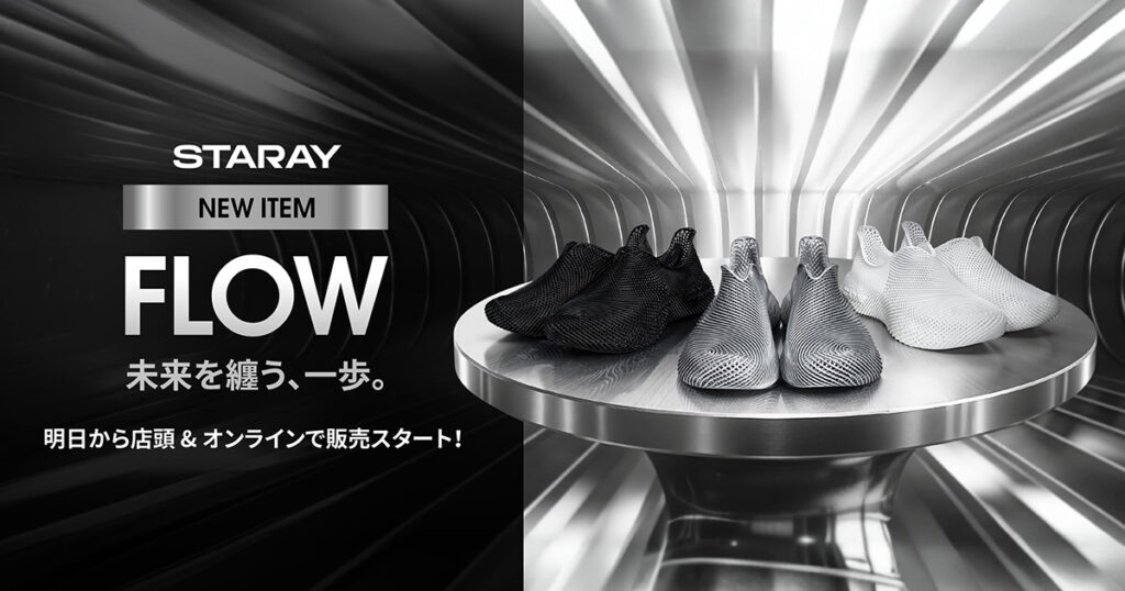 APPLE TREE株式会社は、3Dプリントシューズブランド「STARAY」より、新モデル『FLOW(フロー)』を2025年11月1日(土)に発売いたします。