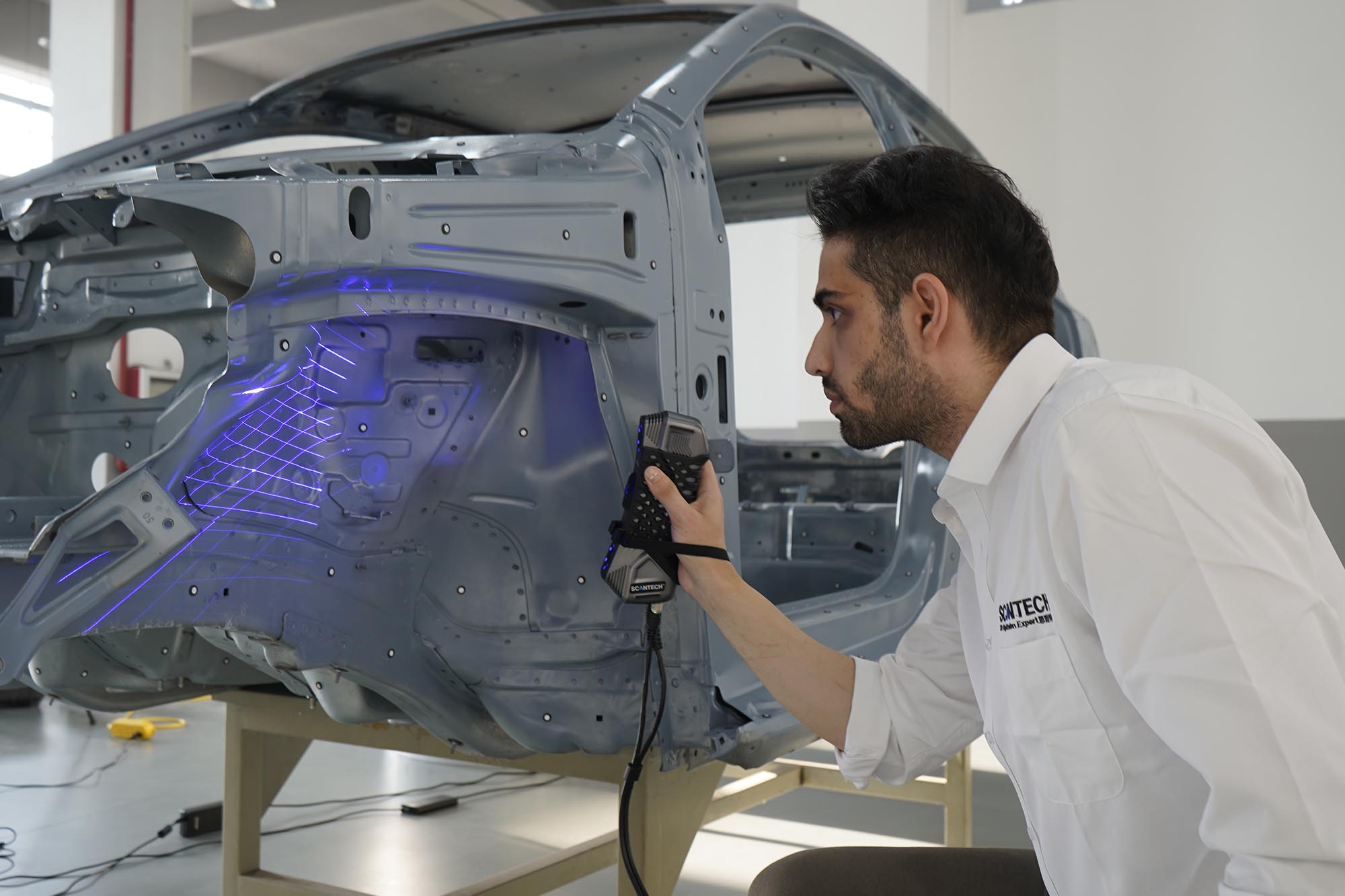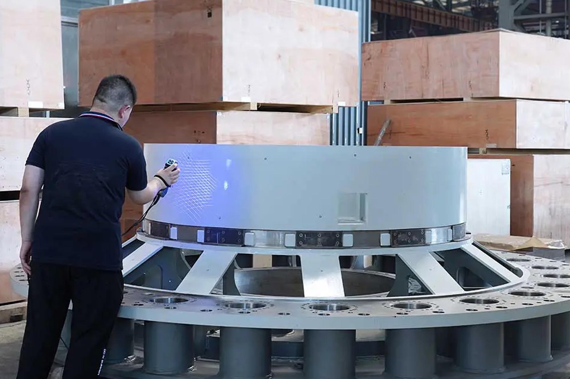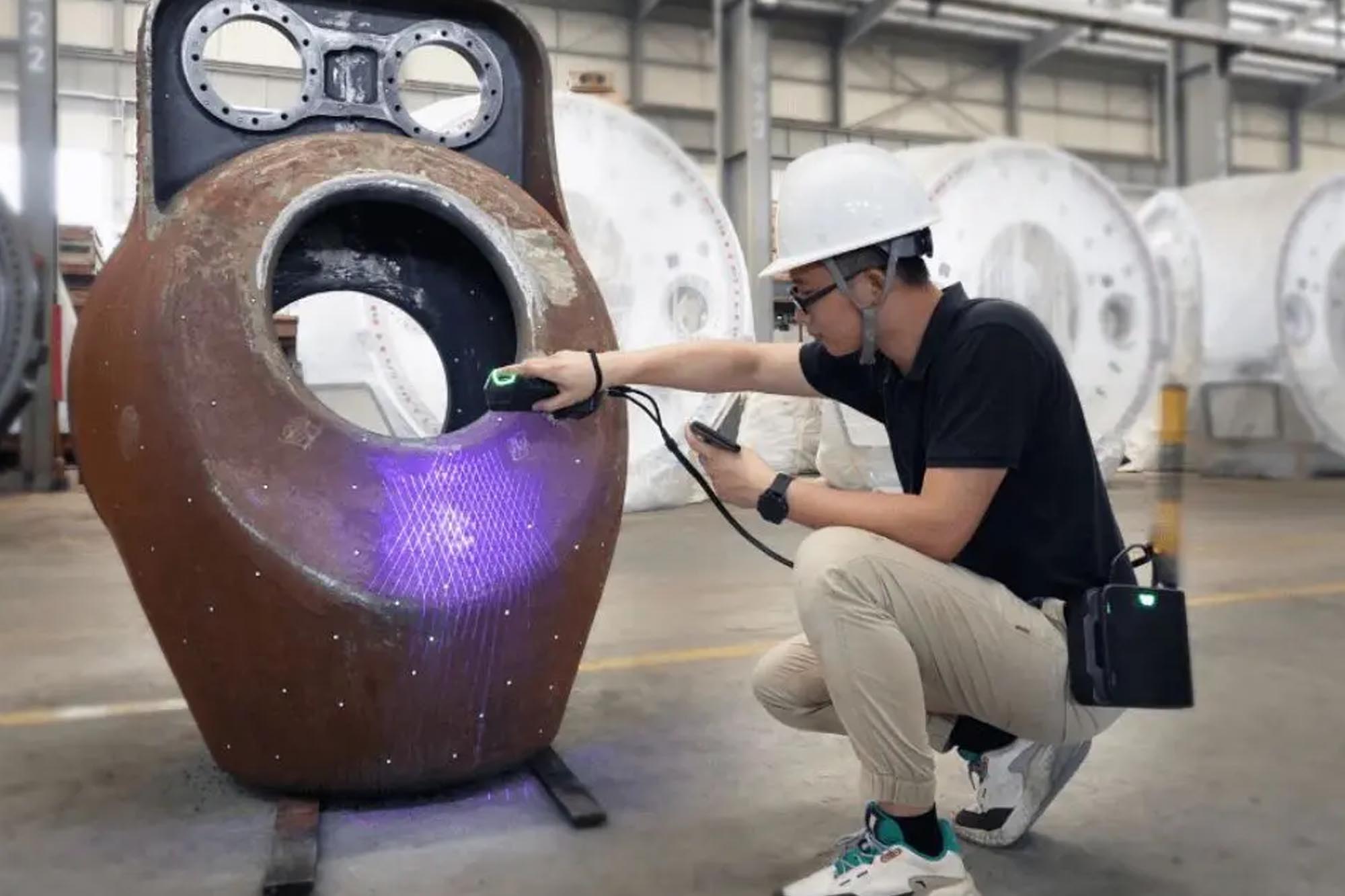 SIMSCANはコンパクトなサイズと優れた携帯性を備えており、狭い空間でも巨大な対象物の下でも、あらゆる場所で3D測定を実施できます。